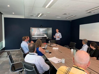 Prof. Bradley Ladewig presented an overview of hydrogen projects in Europe, funding sources, driving forces for decarbonization, and a detailed snapshot of the progress in the Luxembourg Hydrogen Valley.