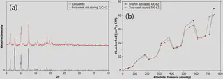 In this paper, we demonstrate the highly efficient photo-switching ability of a Cu-azobenzene tetracarboxylate MOF (JUC-62) for low-energy CO2 capture. Under UV light irradiation, both at 273 and 298 K, JUC-62 showed 51% and 34% lower CO2 uptake, respectively, than when UV light was off. Its dynamic CO2 uptake also matched well with its static condition. Storing it at ambient condition was also found not to destroy its framework structure and its dynamic photoswitching property could still be maintained.